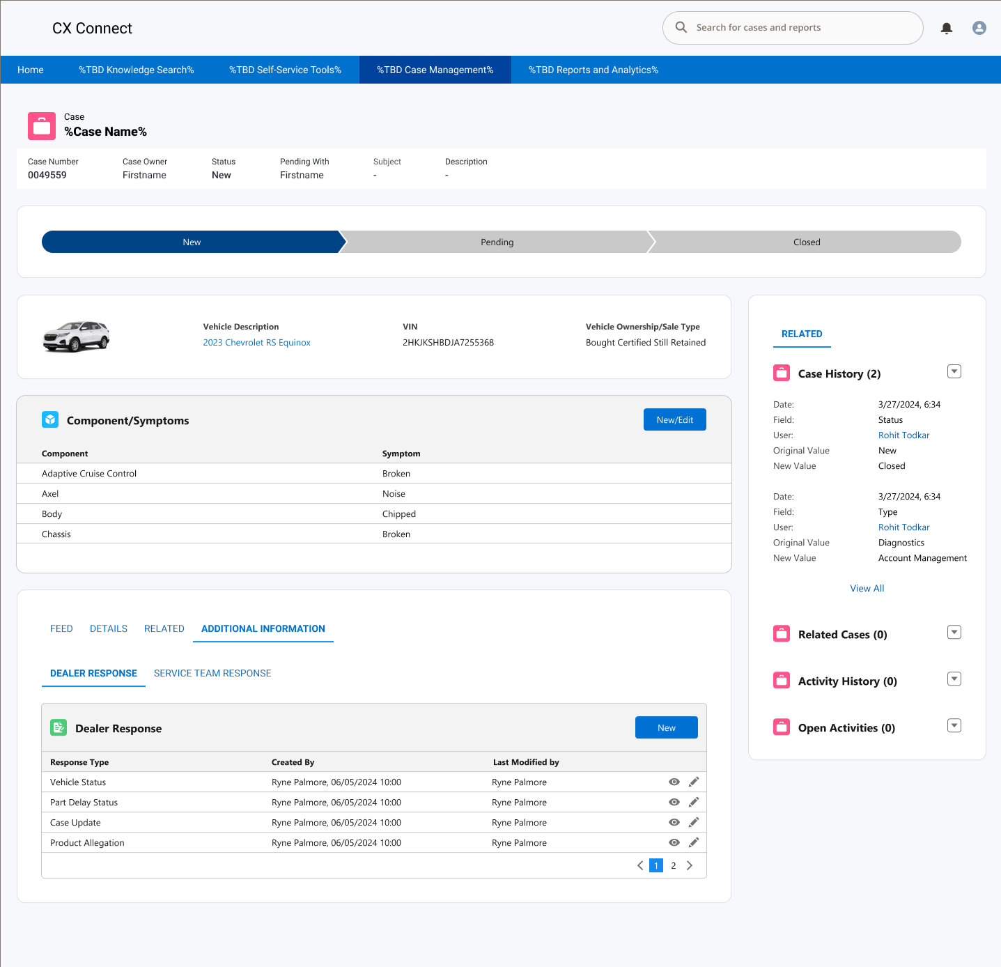 Dealers could initiate complex cases with the right context, track downstream ownership, and receive resolution outcomes directly.