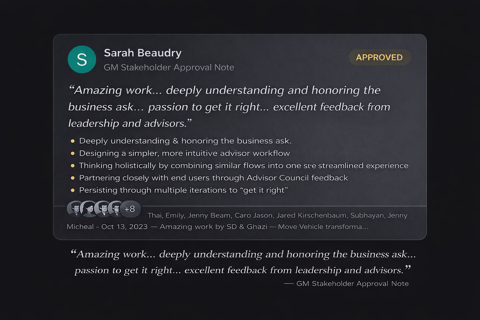 One of the most meaningful outcomes was the trust built between our Salesforce delivery team, GM stakeholders, and dealer end users.
