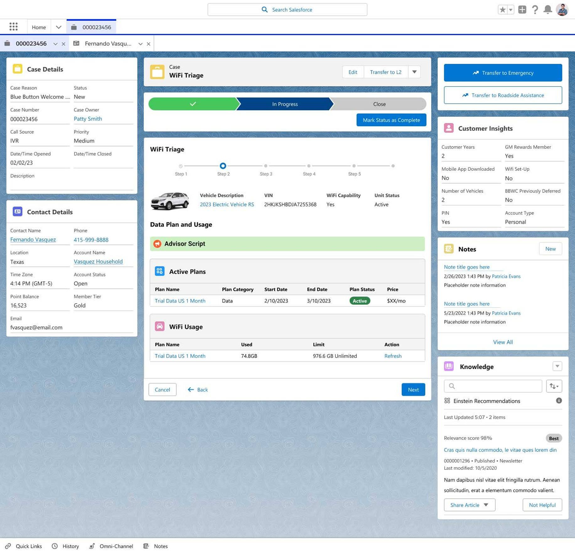 A full 360° customer and vehicle snapshot at the start of every call so that agents can shift immediately from data-gathering to problem-solving.