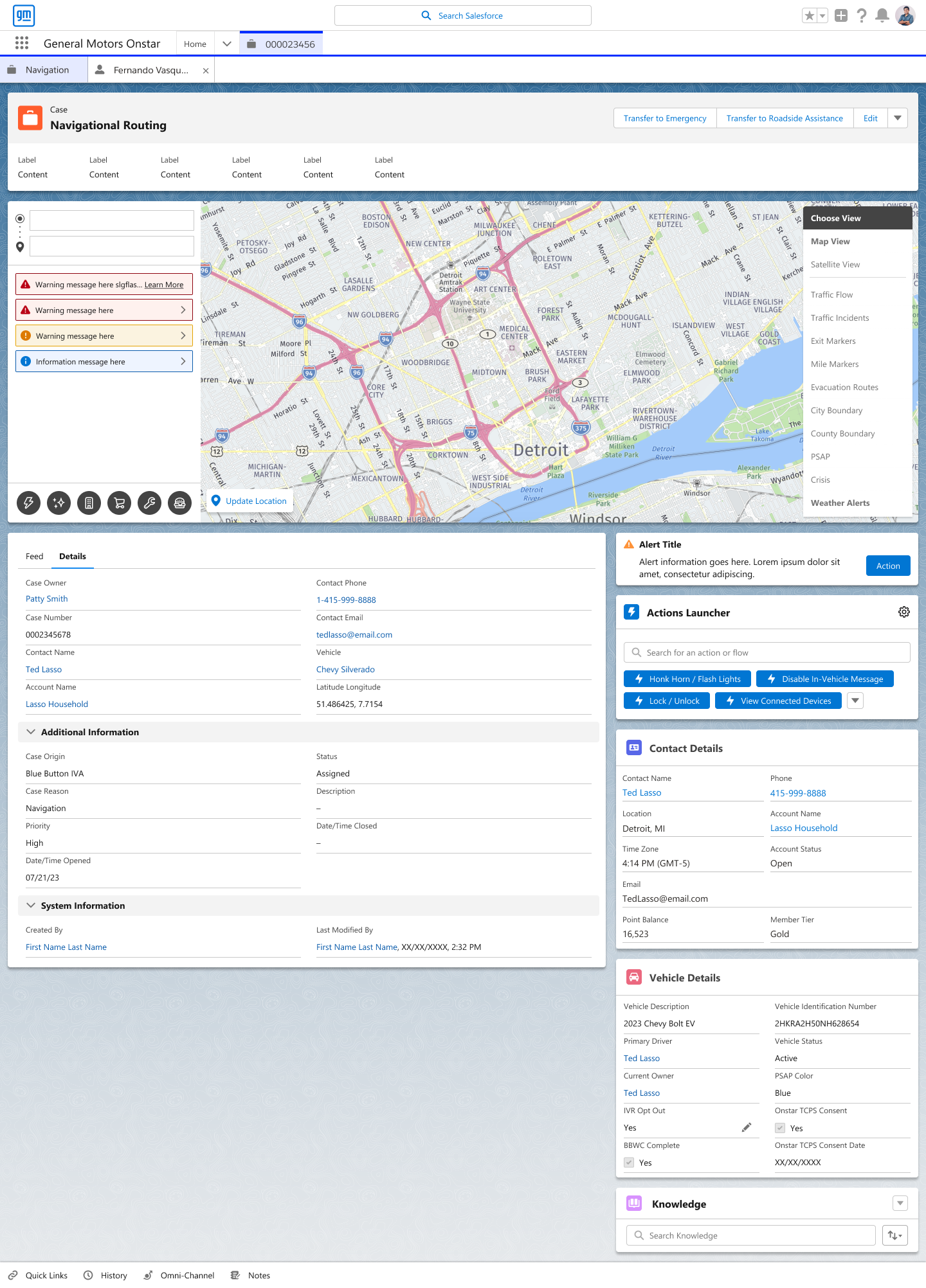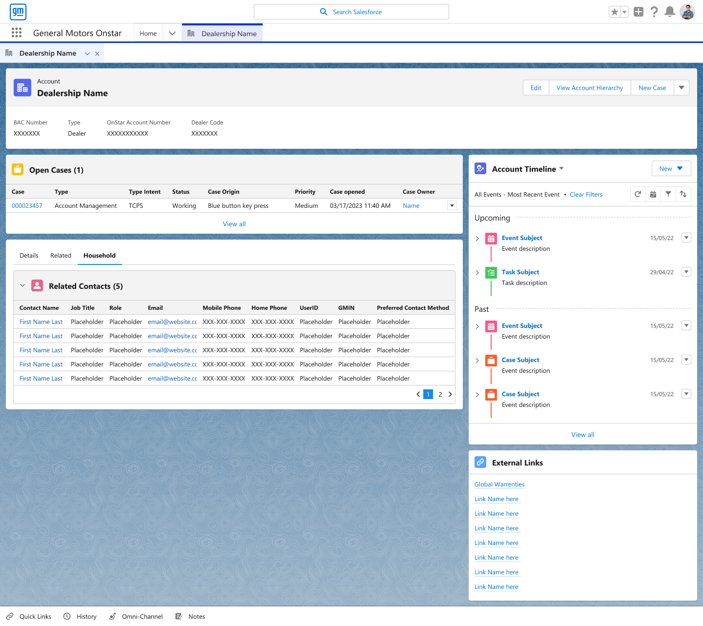 get a complete picture of the customer, everything ranging from their vehicles, open cases, contacts and a history of their account. We organized the information based on the frequency they needed to be accessed.